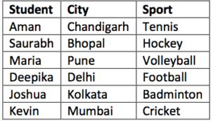 Aman, Maria, Joshua, Kevin, Saurabh and Deepika have come to participate in an inter-school sports meet held in Chennai. They play different sports and belong to different cities. The six sports are Cricket, Tennis, Hockey, Football, Badminton and Volleyball, and the six cities are Chandigarh, Pune, Kolkata, Mumbai, Bhopal and Delhi.